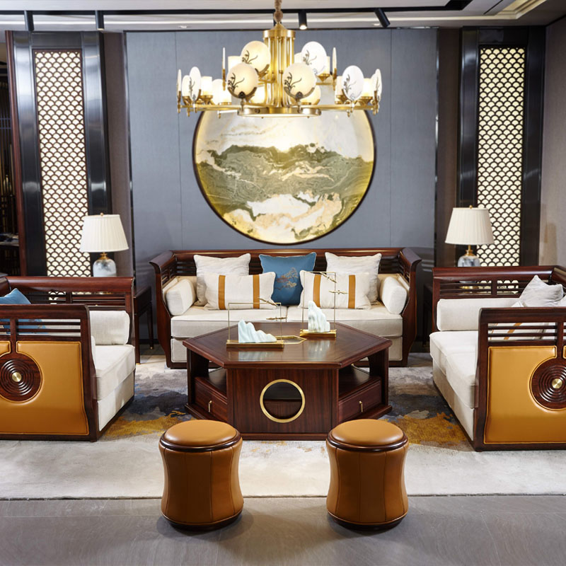 多功能小茶幾,黑色的圓盤下面還暗藏玄機呢!定制款地毯也是客廳亮眼的裝飾。